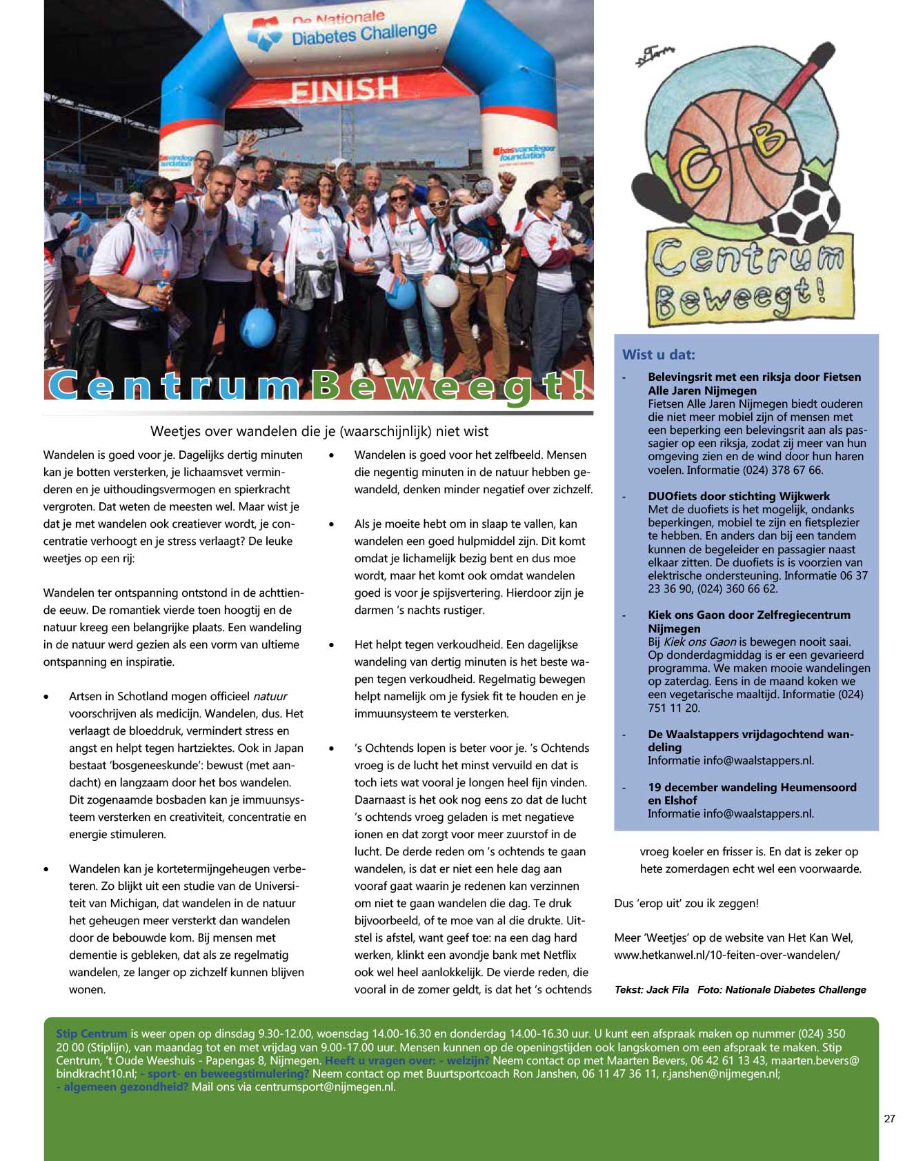 Professionals in de Benedenstad zijn geïnspireerd (geraakt) om samen met elkaar én met wijkbewoners in te zetten op een gezondere leefstijl voor inwoners van het Centrum en de Benedenstad. Zo is vanuit het Gezondheidscentrum ’t Weeshuis een start gemaakt met patiënten uit de eigen praktijk om in het kader van de Diabetes-challenge met elkaar te gaan wandelen. De persoonlijke benadering, het gezamenlijk bewegen, het plezier om dit wekelijks in een groep te doen – gezelligheid – verbinding – succeservaring – hebben inspiratie gegeven om de ontwikkeling verder door te zetten, met andere professionals in de wijk.
